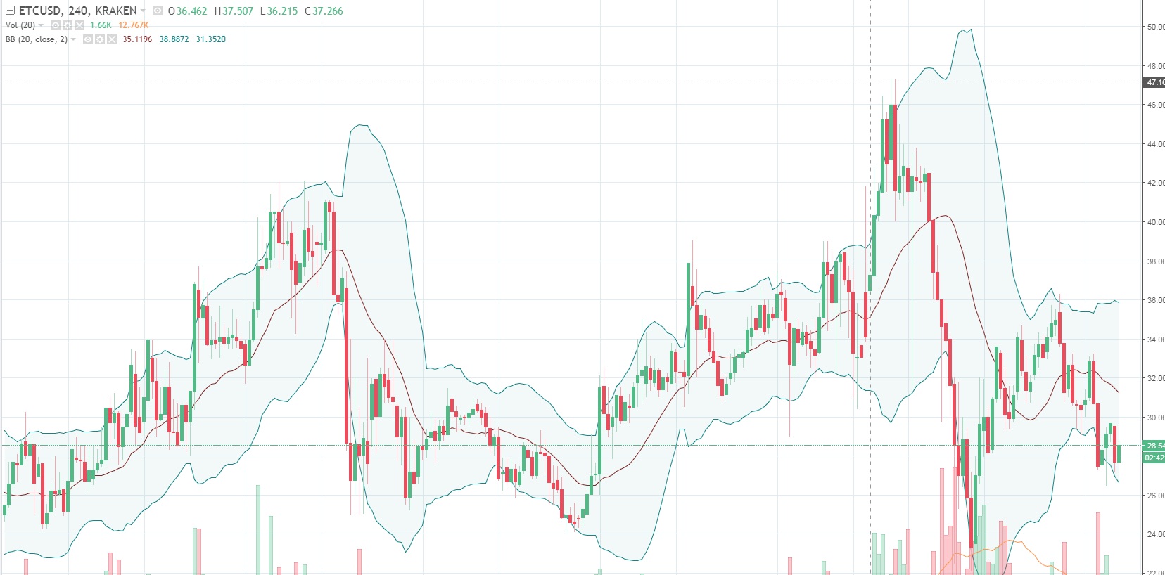 • Цена Эфириум Классик находится в снижающемся тренде, и в последнее время она торгуется ниже $ 30,00.