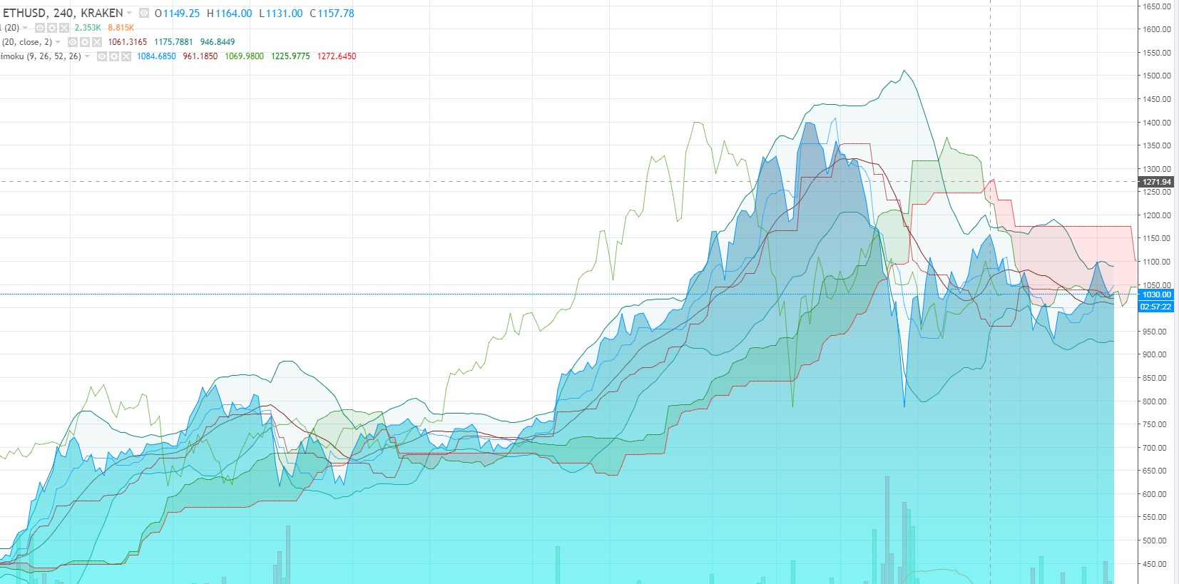 - Цена ETH сформировала дно около уровня 900 долларов, оправилась от падения и хорошо выросла достигнув в пиковом моменте цены 1097.