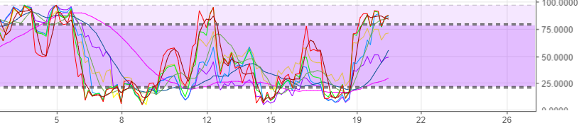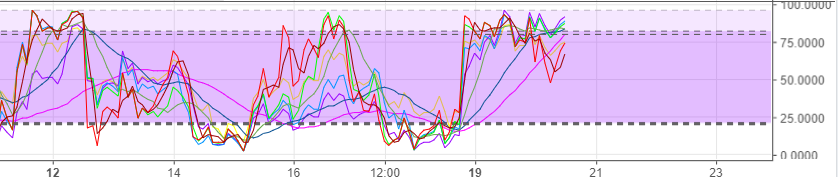 Поддержка: $8 300 – терпимо, $8 100 — $8 000 – идем вниз. Новые позиции открывать в данный момент довольно рискованно. По 2 и 4 часам индикаторы показывают перегретость.