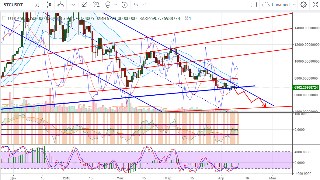 Если биткойн сможет осилить $7 000 ближайшее время, то ситуация поменяется. Но индикаторы по дню говорят не в пользу этой версии.