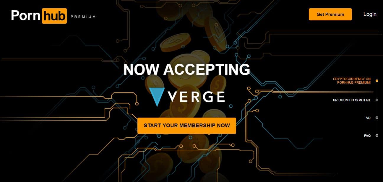 «Будущее пришло. Чтобы соответствовать запросам наших клиентов о возможностях в сфере платежей и приватности, Pornhub будет принимать Verge за доступ к аккаунтам Pornhub Premium на нашей платформе. Полагаясь на ключевые ценности Verge – безопасность, анонимность и практичность — добавление этой криптовалюты в опции приема платежей символизирует шаг в будущее для нашей индустрии, которая всегда находится в авангарде технологий»