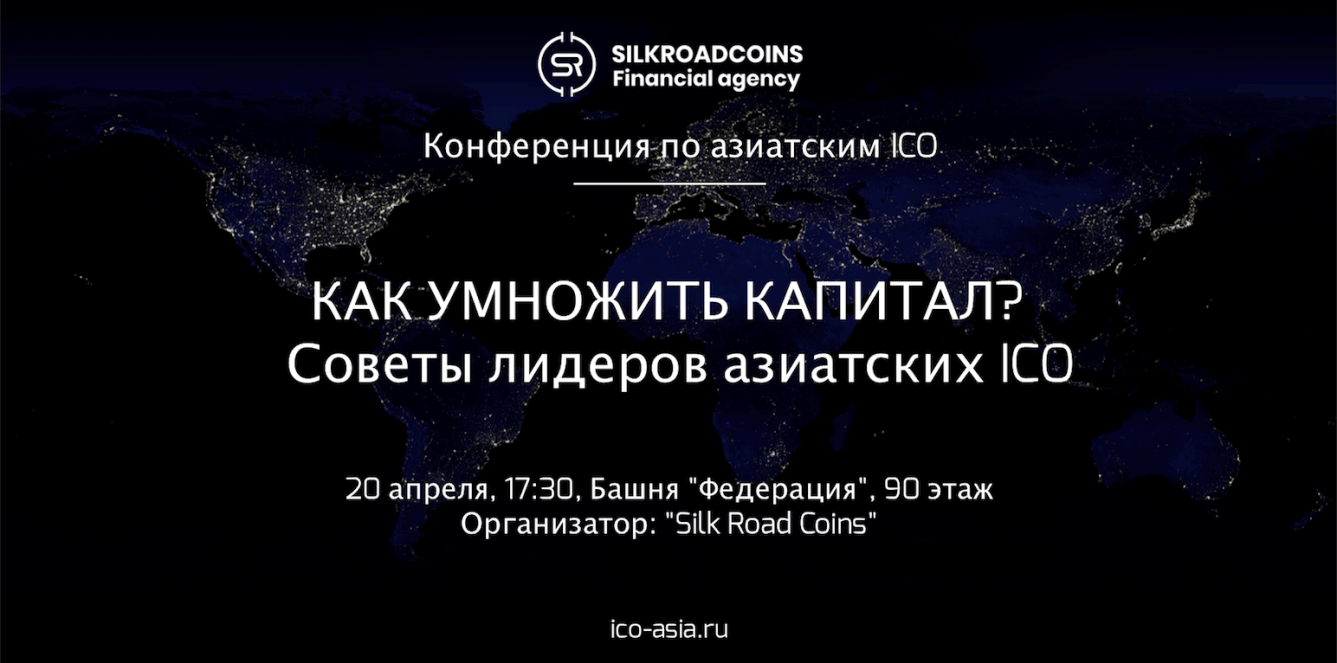 20 апреля лидеры азиатских ICO проведут крипто-конференцию на 90 этаже Москва Сити – советы спикеров из Японии и Кореи «Как умножить капитал?» призваны открыть перспективы азиатского рынка ICO-проектов для заинтересованных инвесторов. Дополнительно, аудитории представят конкретные инвестиционные проекты, способные реально умножить вложения. Организатором мероприятия выступает финансовое агентство «Silk Road Coins».