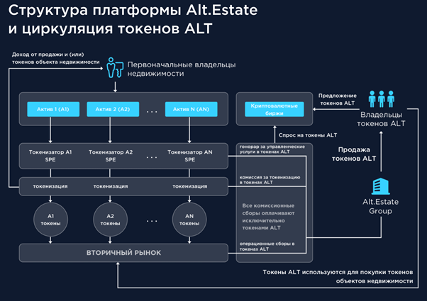 Платформа Alt.Estate является площадкой для торговли недвижимостью на первичном и вторичном рынках. Блокчейн-протокол упрощает и ускоряет эти процессы, поэтому пример Алексея вполне реален. Блокчейн позволяет снизить транзакционные издержки с 30% до 2%, а также их время: если раньше это занимало несколько недель, то теперь все можно сделать в 1 клик. Информация загружается в IFPS, что обеспечивает прозрачность прав владельцев ALT токенов, там же сохранены договоры купли-продажи и правила использования недвижимости.