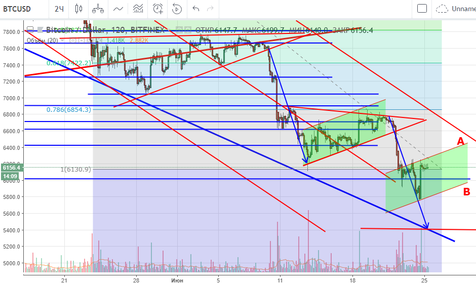 На текущий момент вполне возможно продолжение движения в подканале A-B, а вероятность теста $5 800 — $5 400 сохраняется.