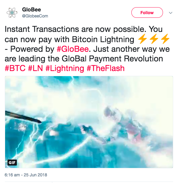 Платежная платформа GloBee на своей странице в Twitter анонсировала запуск мгновенных биткойн платежей, интегрированных с сетью Lightning: