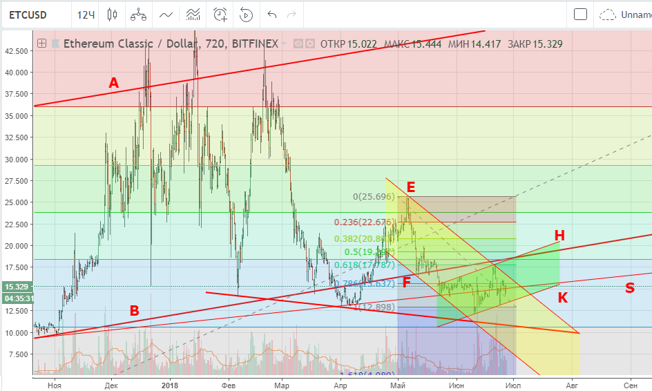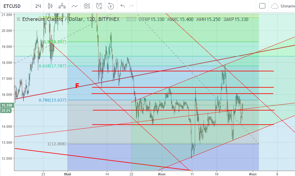 Тем не менее, классик идет в след за рынком, и боковик продолжается. Сейчас монета торгуется на уровне $15,3. Пока биткойн не определится с направлением движения, вряд ли стоит ожидать от ETC каких-то серьезных ценовых движений.