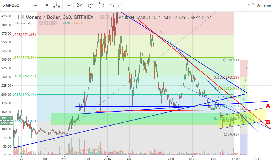Monero (XMR/USD). Монеро после серьезной просадки 10 Июля до $83,51 (Bitfinex) успешно восстановил свои позиции и сегодня торгуется у отметки $132. На пике, в Декабре 2017, Монеро стоил $474.