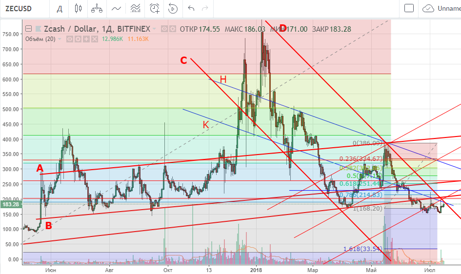 ZCash (ZEC/USD). Зикэш пока оправляется после пампа вместе с ADA, BAT, XLM и ZRX после новости о том, что Coinbase рассматривает эти монеты для добавления на свою биржу. Всего один твит, а как резку взлетела цена (со $150 до почти $200)! На данный момент торгуется на отметке $183, и по-прежнему остается одной из наиболее перспективных монет как для долгосрока, так и для торговли на коротких таймфреймах.
