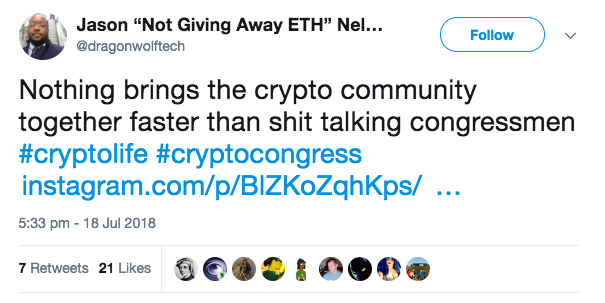 «Ничто не объединяет криптосообщество так быстро, как несущий фигню конгрессмен»