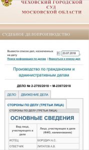 В своем Facebook-аккаунте сегодня, 24 июля, Артур Липатов сообщил о том, что получил сообщение о предстоящем (завтра) судебном рассмотрении искового заявления от фаундера проекта Universa Александра Бородич. Бородич, со слов Липатова, ранее уже грозил ему судебными тяжбами, ввиду намеренного причинения урона репутации проекта обвиняемым.
