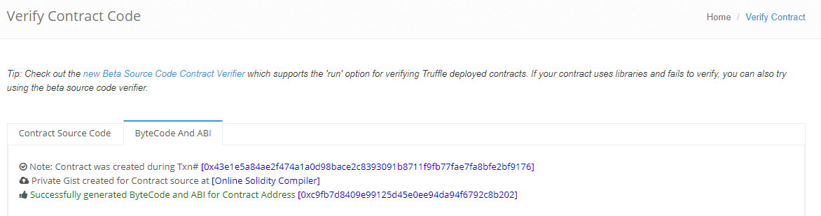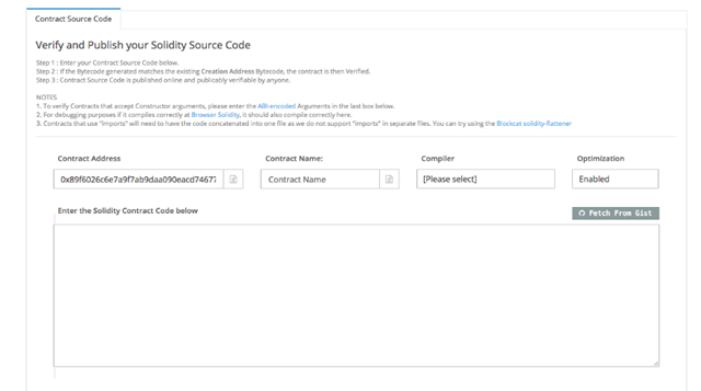 - перейти на вкладку Contract Code и кликнуть на Verify And Publish.