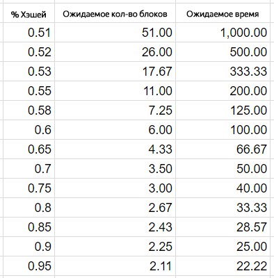 Здесь задействована некоторая математика, но число ожидаемых блоков до захвата остальной сети Mitbain на самом деле достаточно большое. При 60% сетевой вычислительной мощности ожидаемое число блоков до захвата сети Mitbain составляет 6! Заметьте, что это при 60% вычислительной мощности, так что на эти 6 блоков уйдёт не 60, а 100 минут.