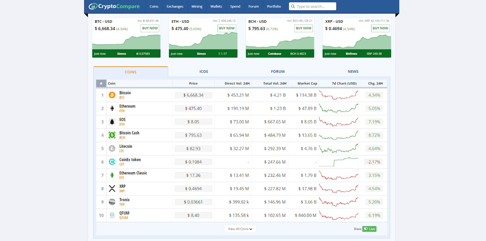 CryptoCompare — один из самых старых и авторитетных ресурсов о технологии блокчейн и всем, что с ней связано.
