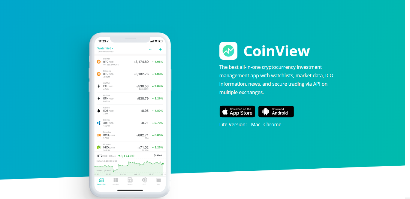 CoinView — это один сервис вместо новостных сайтов, биржевых приложений менеджеров портфолио, кошельков, провайдеров графиков, ICO-трекеров и платных виджетов.