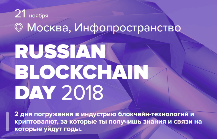 В Russian Blockchain Day 2018 включены: конференция, мастер-классы и презентация проектов.