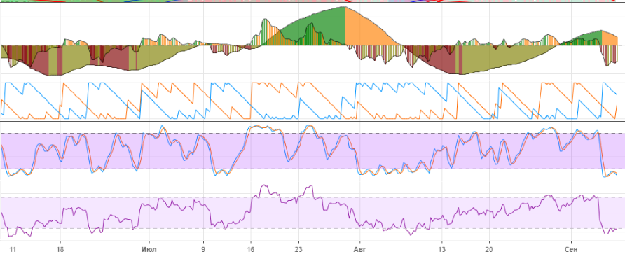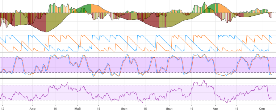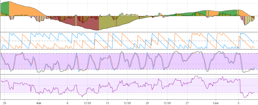 По 3-6-12 часам индикаторы разгрузились, значит сейчас шанс на коррекцию все же имеется. Единственное, что этому мешает – очень маленькие объемы, люди хотят закупиться пониже.