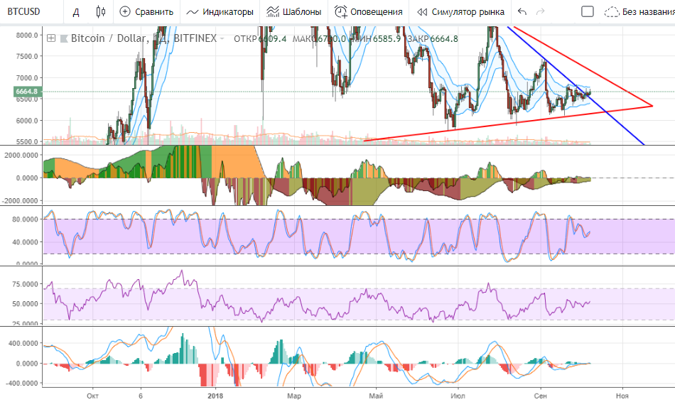 Скорее, лучше ориентироваться на уровни, чем на индикаторы. $6 370 — $6 760 – соответственно нижняя и верхняя границы движения цены.