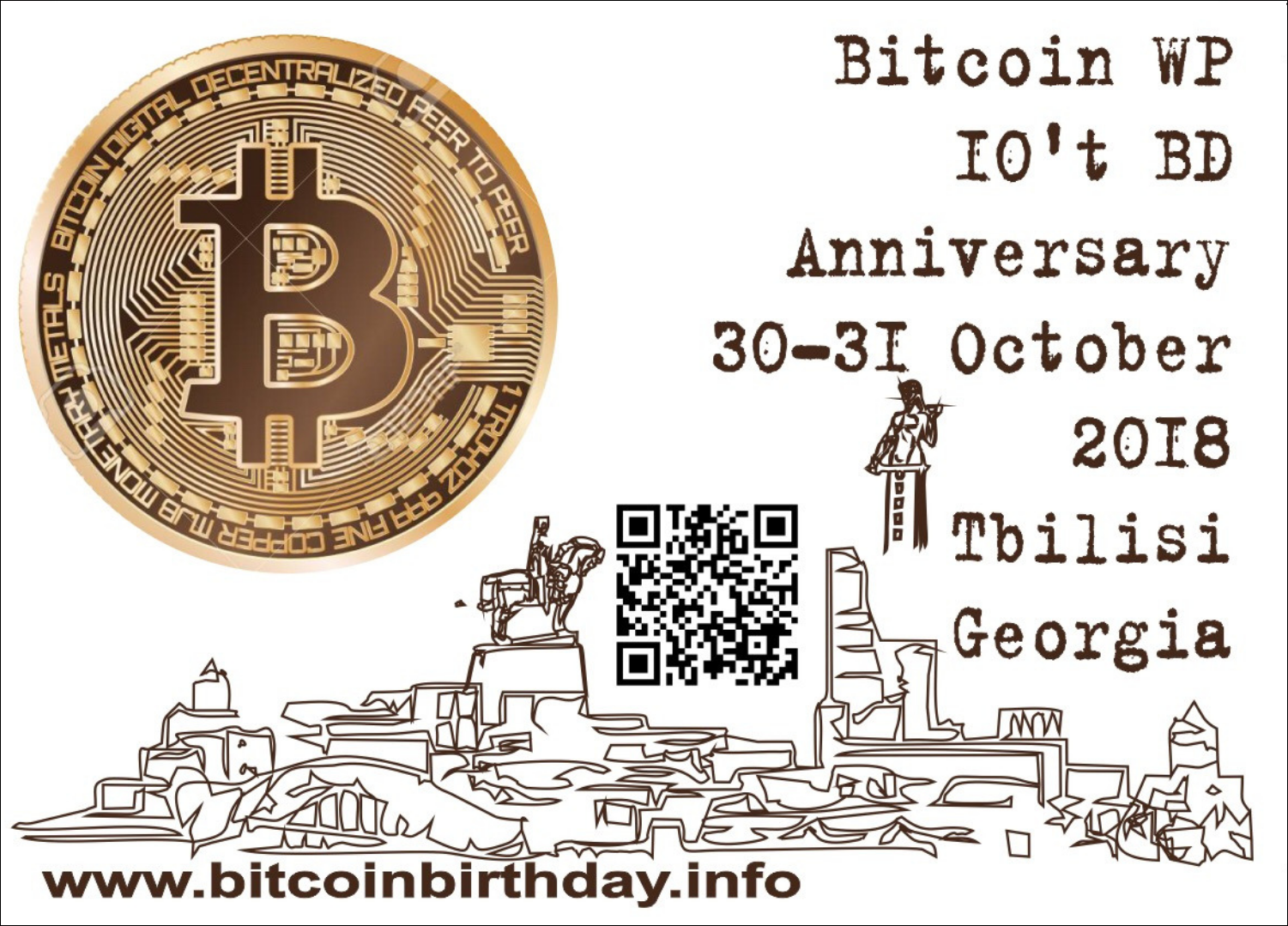 30-31 октября 2018 года, в Тбилиси, проведут грандиозный по задумке юбилей, организованный Ассоциацией цифровой экономики Грузии – DEAG, и посвящённый десятилетию с публикации White Paper Биткойна. Всё подробности можно получить на сайте Bitcoin Birth Day. Более 200 участников из 10 стран ждет интенсивный нетворкинг в течение двух дней. Спикеры подведут итоги последних десяти лет для Биткойна и поделятся идеями на 2019-2020 годы. Представители грузинского правительства расскажут о перспективах развития блокчейн-отрасли в Грузии. Дополнительно будут подписаны меморандумы о сотрудничестве между государствами и криптосообществами разных стран.