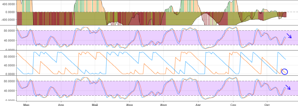 200-ый мувинг сейчас проходит на отметке $7 100, и, пока цена биткойна находится под ним, господство медведей на рынке продолжается. Итого – флэт, цели снизу и сверху видны.