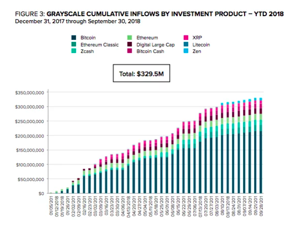 Крупнейшие инвесторы, согласно отчету компании, вложили 81 млн долларов в криптовалютные продукты Grayscale Investments в III-ем квартале 2018-го года, и 330 млн долларов – за все три квартала.