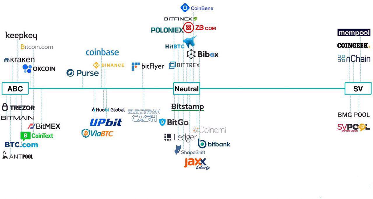 Кстати, поздравляю вас с еще одним очередным форком битка! BCH больше нет, зато теперь есть Bitcoin ABC (поддерживаемый Роджером Вером) и Bitcoin SV (поддерживает Крэйг Райт). И вот такую интересную картинку я нашел о том, кто против кого дружит:
