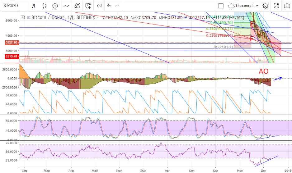 С 17 по 22 декабря 2017 года — гиперболическое падение с ускорением. Глубина — 40% ( с 20000$ до 12000$ ). Новый цикл не начался.