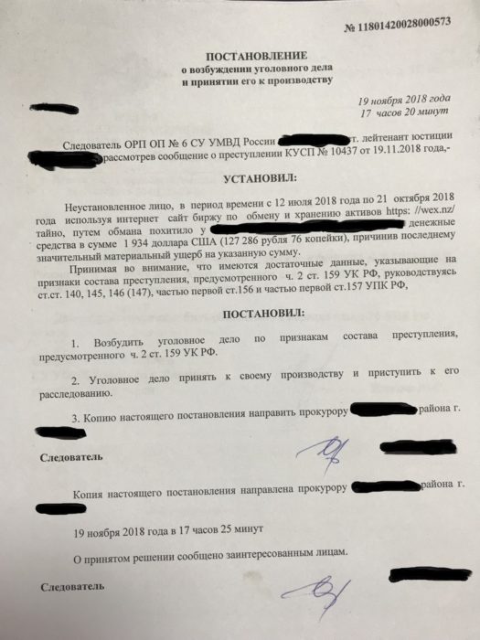 Инициативная группа пользователей криптобиржи WEX сообщила о том, что полиция РФ возбудила первое уголовное дело против гендиректора площадки Дмитрия Васильева. Ранее СМИ сообщали о том, что вследствие блокирования средств пользователей они начали подавать массовые заявления в российские правоохранительные органы.