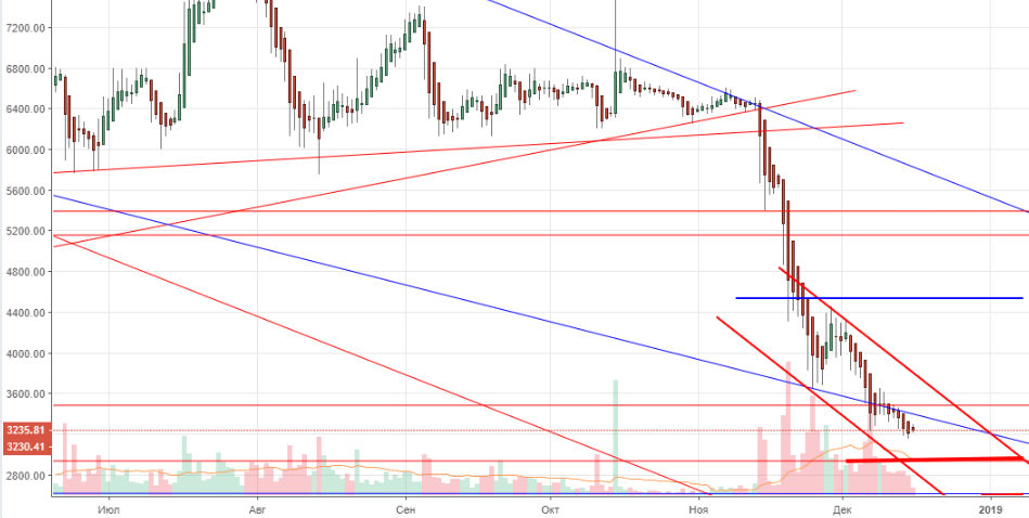 Покупателя нет, поэтому, думаю, что как вариант до $3 000 — $2 800 могут вниз продавить, и, уже за счет шортов прокатиться наверх в район $4 500 — $5 000. Главное, чтобы на панике ниже лить не начали. Ждем начала новой торговой недели!