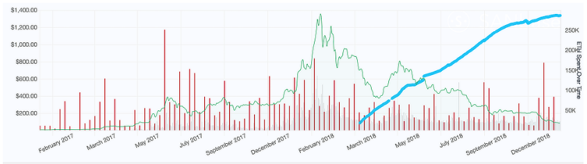 Если даже взять средний курс эфира за $100, то получается $40 млн. Сумма, в общем то, по меркам рынка небольшая, только нужно учитывать, что активные распродажи идут с начала весны, тем самым обваливая курс. К гадалке не ходи, это касается и других монет, в которых собирали ICO.Кстати, по поводу ICO.В виду практически отсутствия какой-либо детальной информации по проекту TON (GRAM), большинство людей сбрасывает его со счетов (либо вообще ничего про него не знает). А ведь, насколько я помню, он собрал около $1,5 млрд. Так что проект Паши Дурова вполне может быть той самой серой лошадкой. Сотни миллионов пользователей + интеграция платежей в телеге + еще какие-то фишки, о которых пока нам неизвестно. Однако, вопрос децентрализации остается открытым. Так что кто знает, кто знает…