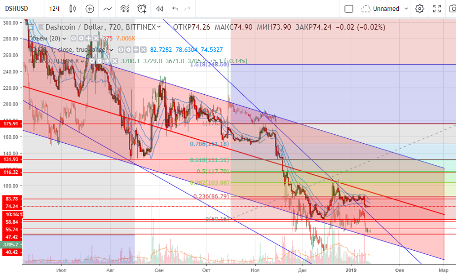 Воскресный обзор курса топа криптовалют BTC, ETC, ETH, DASH 13.01.2019