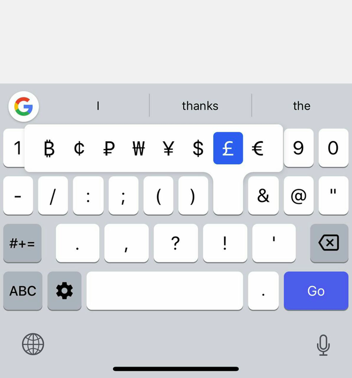 Google добавила символ первой криптовалюты в версию своей клавиатуры для устройств от Apple. Символ «₿» на клавиатуре доступен при длительном нажатии на символ «$». Одним из первых нововведение заметил пользователь Twitter под ником JP [ ₿ ⚡️]. Он написал, что символ биткойна выскакивает первым из валют, когда нажимаешь на доллар. По словам пользователя, это говорит о проникновении и росте популярности биткойна. Аналогичные мнения высказывали в соцсетях другие пользователи, обнаружившие новый символ.