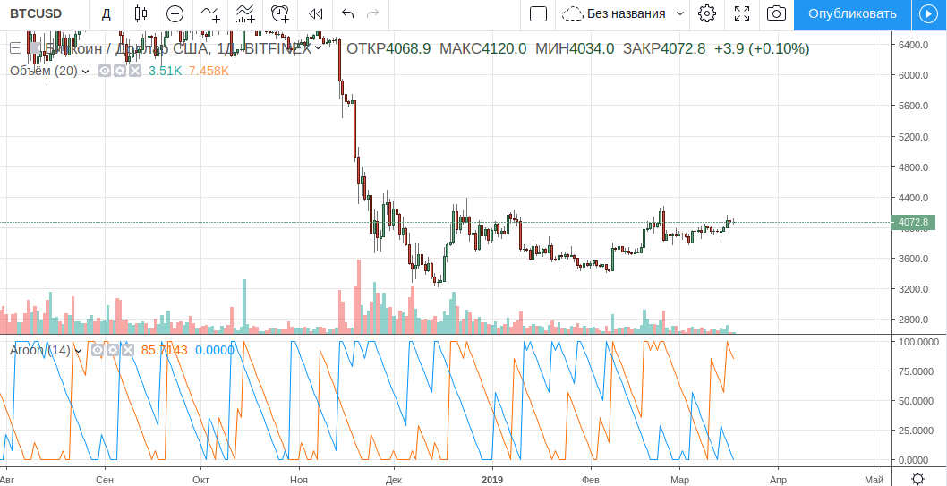 Еще один осциллятор, заслуживающий нашего с вами внимания, называется Aroon Oscillator (Aroon).
