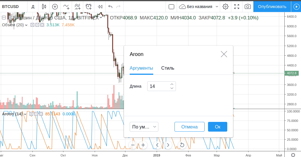 Методика расчета линий Aroon Oscillator