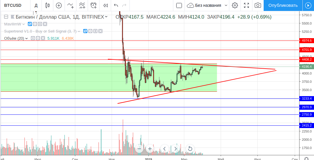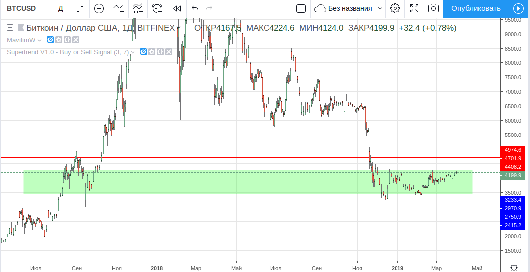 Начинать лучше со пива старших таймфреймов — 1d либо 1w (день и неделя соответственно), чтобы хотя бы примерно разобраться, где мы вообще находимся.