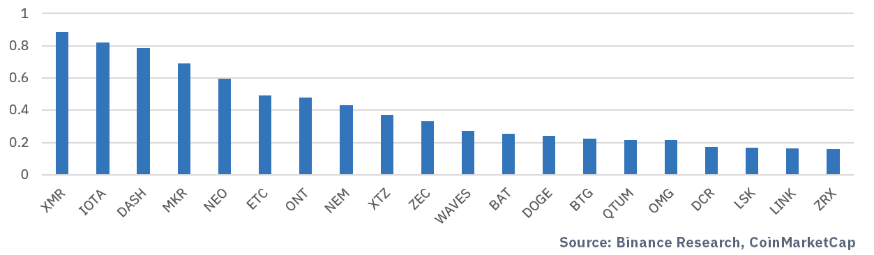 Как сказано в первом разделе, в рамках этого анализа рассматривались топ-30 цифровых активов по 30-дневной средней рыночной капитализации по состоянию на 31 марта 2019 г.