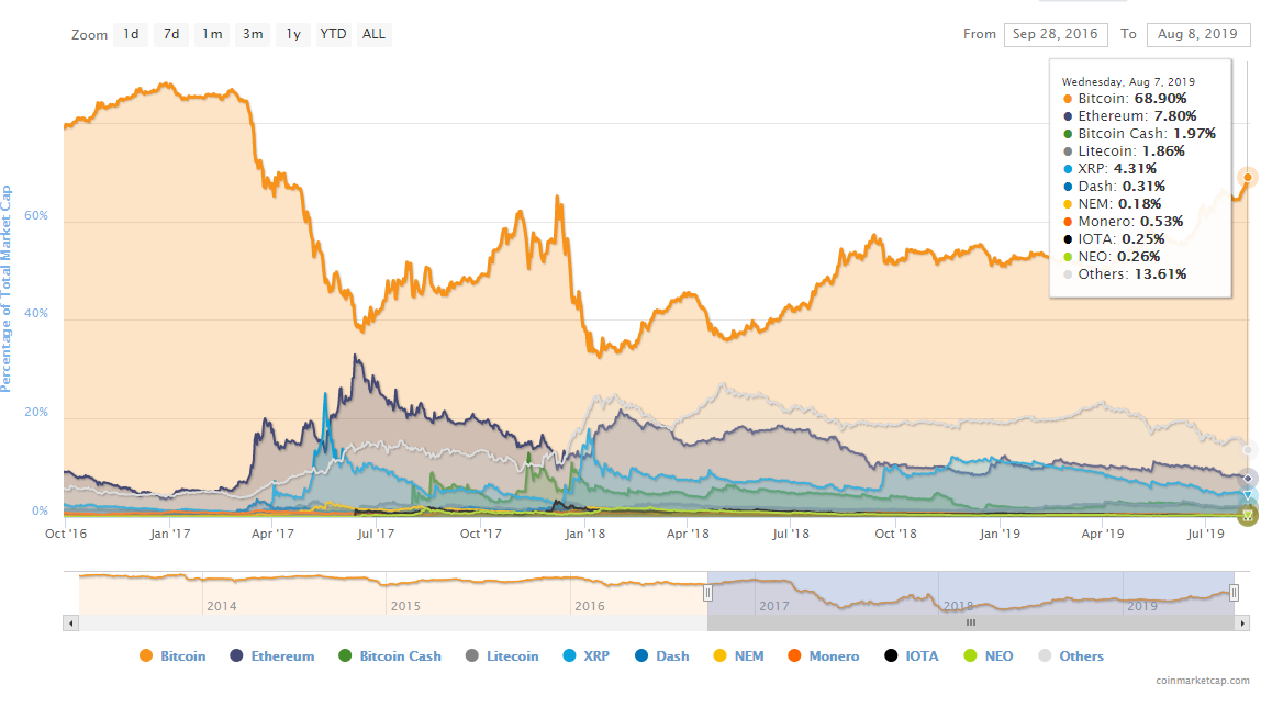 Сообщается, что доминирование Биткойна на рынке – около 70%, но на самом деле оно превышает 90%