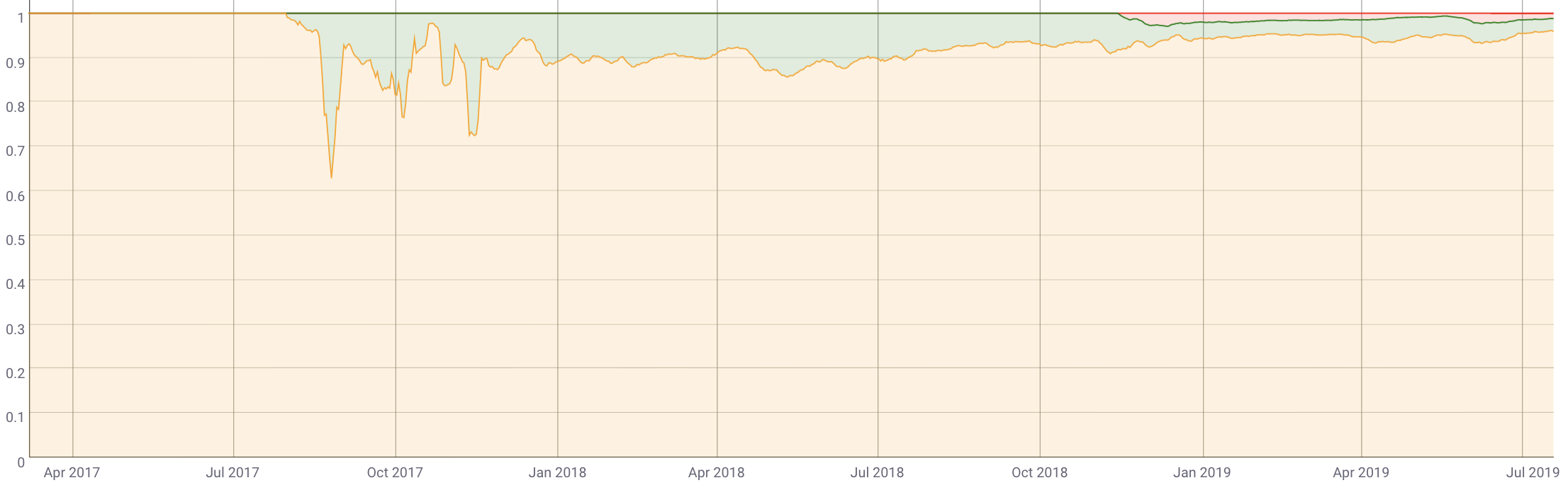 Я решил сравнить требования к подтверждениям на Kraken с наивной имплементацией BitConf от Лусарди – просто требуя от всех блокчейнов предоставления эквивалента шести подтверждений в Биткойне.