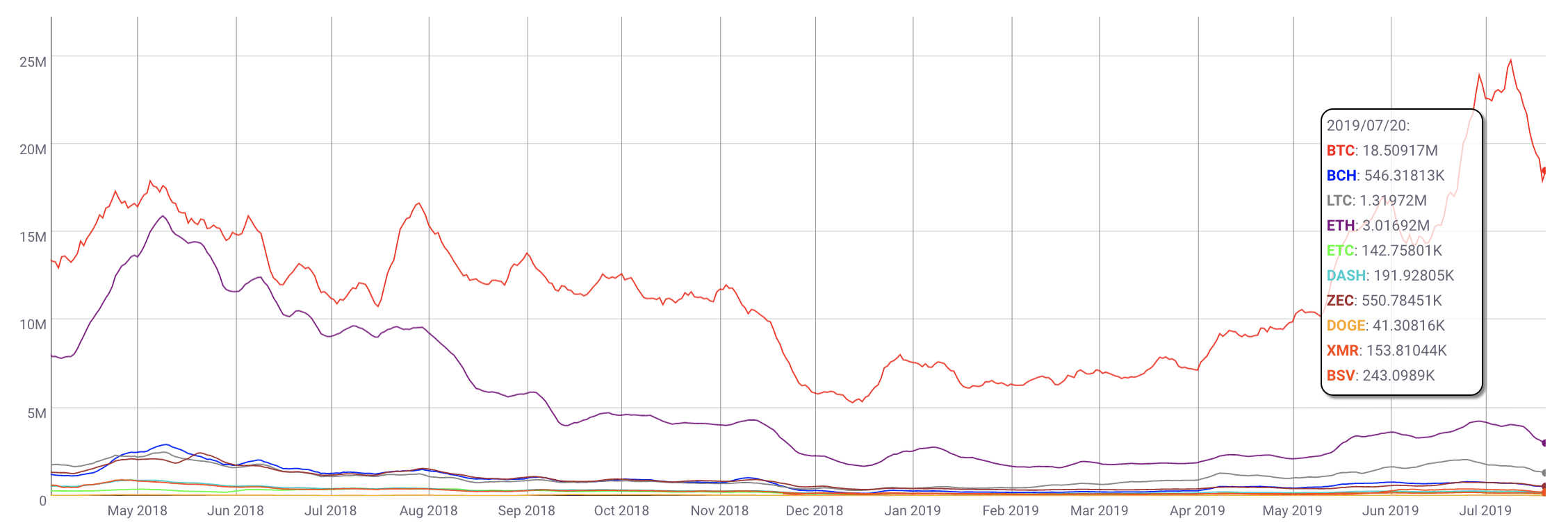 У нас нет простого способа смоделировать ожидания, поэтому самое простое, что можно сделать, – это взять доход майнера в единицу времени и сравнить блокчейны по этому признаку. Даже если на этом вы перестанете читать статью и просто запомните последнюю мысль, то уже будете обладать лучшим пониманием безопасности блокчейнов, чем большинство людей. Очень немногие акторы, даже из тех, для кого ставки очень высоки – как биржи – дают себе труд провести подобный сопоставительный анализ блокчейнов.