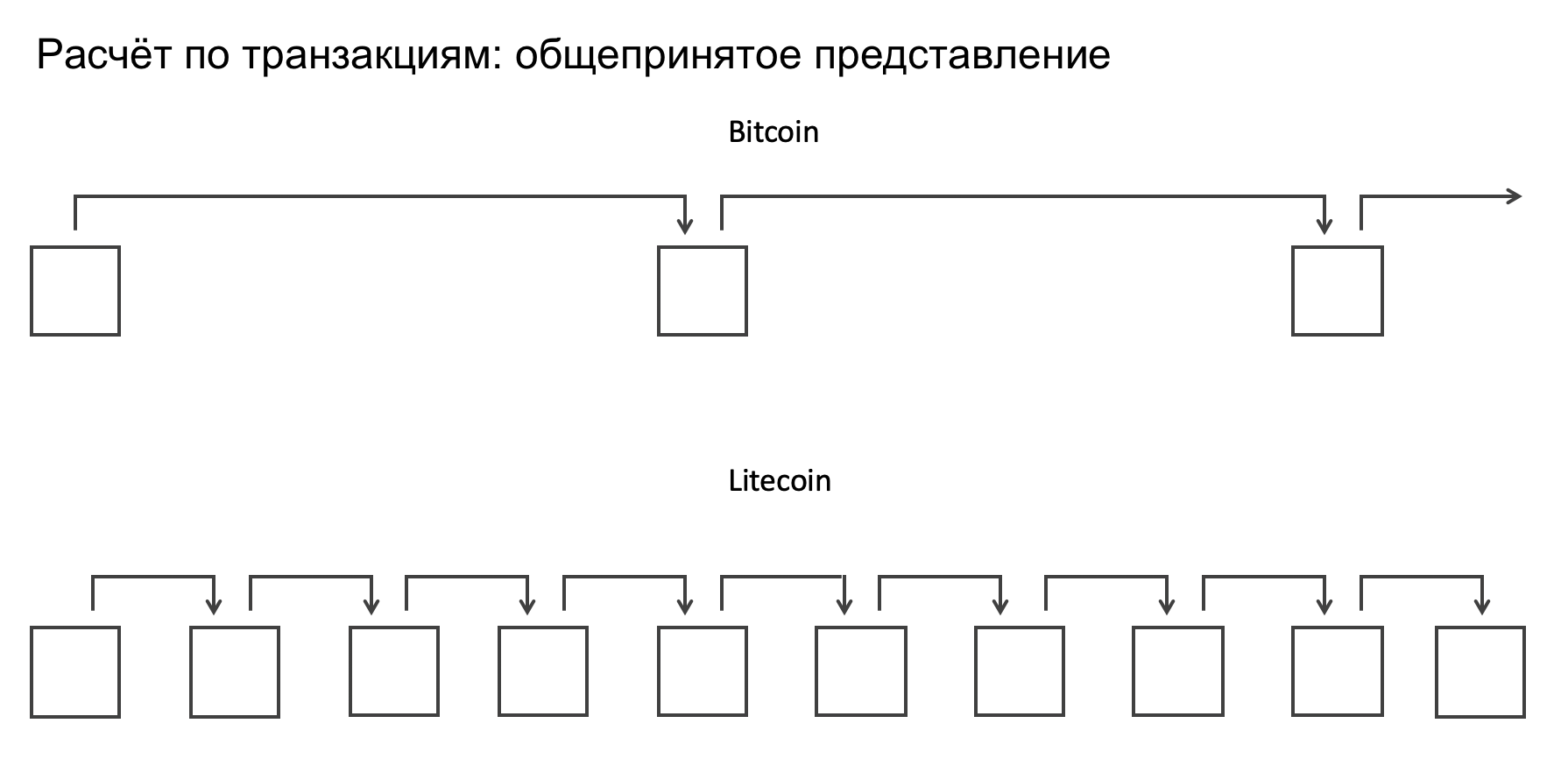 Достаточно сказать, что большинство людей не используют BitConf и не пытаются индексировать расчёт по транзакциям в разных блокчейнах. В «народном» представлении расчёт, финализация, является линейной функцией количества подтверждений. Это мнение, к сожалению, очень распространено. Даже на сайте Litecoin Foundation неявным образом допускается такое утверждение: