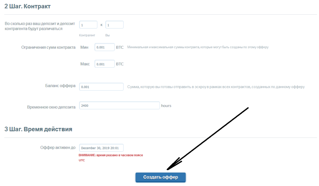 Для того чтобы создать оффер – потребуется ввести биткойн-адрес именно из тестовой сети. Есть кошелёк BitPay, создать там подобный адрес – дело нескольких минут. Вот инструкция: https://support.bitpay.com/hc/en-us/articles/360015463612-How-to-Create-a-Testnet-Bitcoin-or-Bitcoin-Cash-Wallet