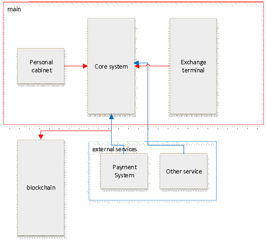 Чтобы своевременно удовлетворить потребности клиентов и вышеописанные базовые требования, комплекс биржевых модулей должен подвергнуться структурным изменениям. Ранее структура выглядела следующим образом: