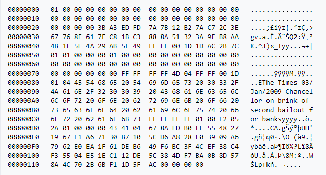 Как наскальные рисунки эпохи палеолита в пещере Ласко, это самое раннее искусство биткойн-сообщества – сам генезисный блок: