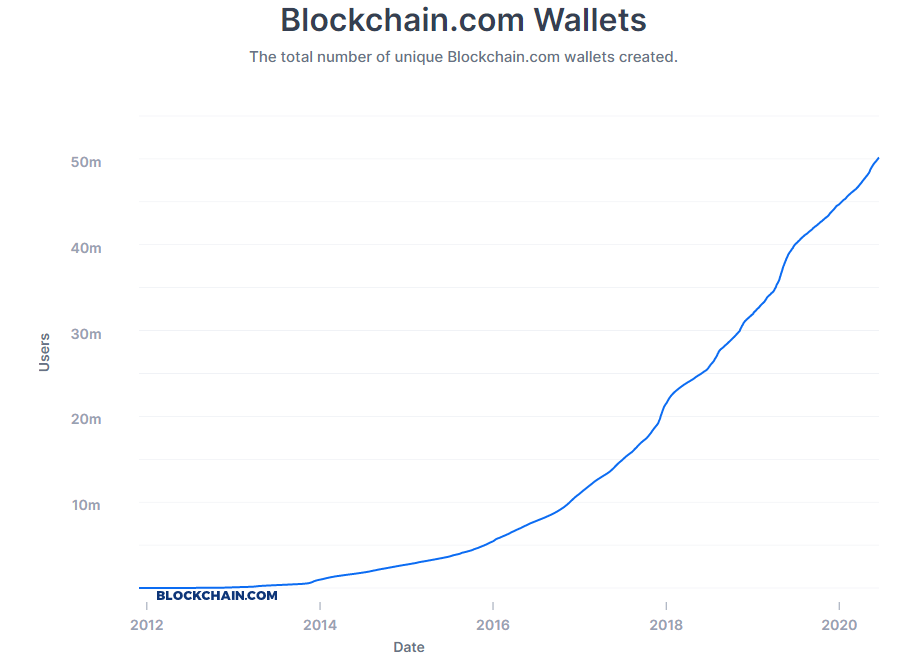 Недавно Биткойн достиг очередной важной вехи. На этот раз в отношении не цены, а количества созданных кошельков, которое, согласно данным о блокчейне Биткойна, на 12 июня 2020 года превысило 50 миллионов.