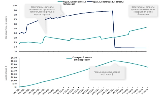Если цена биткойна в течение двух лет будет устойчиво расти до ~19 тыс. долларов с темпом 40% и более в год, то оборудование класса S19 будет оставаться жизнеспособным даже при электроэнергии по 5 ¢/кВт-ч, однако при этом возникнет разрыв в ~4,1 миллиарда долларов между общей потребностью отрасли в капитальных вложениях и денежным потоком, генерируемым внутри сети.