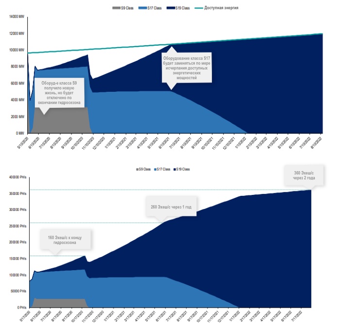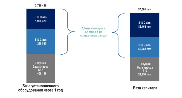 Общий объем капитальных вложений, необходимый для достижения 260 экзахеш/сек. в течение следующих 12 месяцев, составляет 4,5 миллиарда долларов, и еще плюс ~2 миллиарда, чтобы достичь 360 экзахеш/сек. к середине 2022 года.