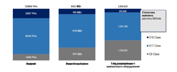 Примечание: для оценки доли электроэнергии, фактически используемой для майнинга, мы исходим из значения PUE 1,12.