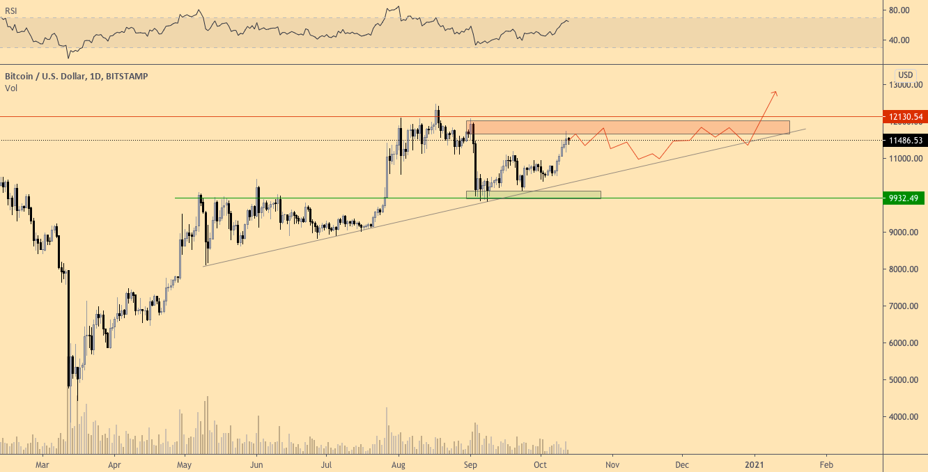 И как уже сказано выше, прорыв и закрепление выше $12.000 будет означать большую импульсную восходящую волну и потенциальное продолжение до новых исторических максимумов.