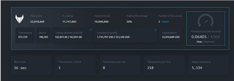 Сеть UMI обладает пропускной способностью порядка 4500 транзакций в секунду. Это существенно превышает аналогичные показатели большинства других блокчейн-сетей, в том числе таких популярных, как Bitcoin или Ethereum.