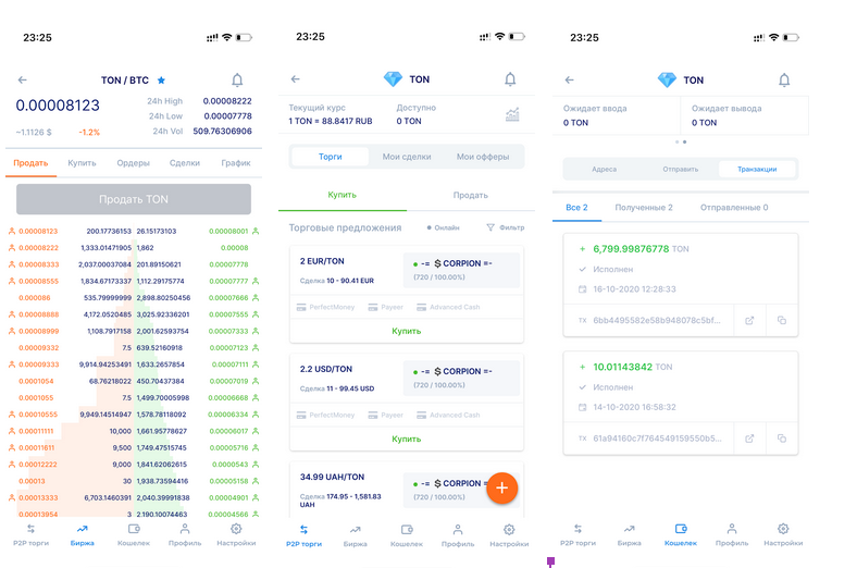 Мобильное приложение: Купить монеты TON на P2P и вывести их на свой кошелек