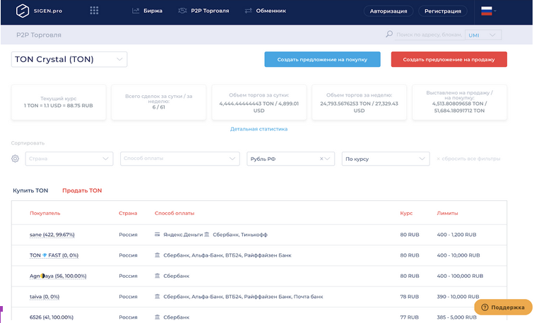 Ниже приложили четыре видеоинструкции по покупке и продаже TON Crystal за фиатные деньги (рубли, гривны, доллары и т.д.) на P2P-площадке SIGEN.pro.